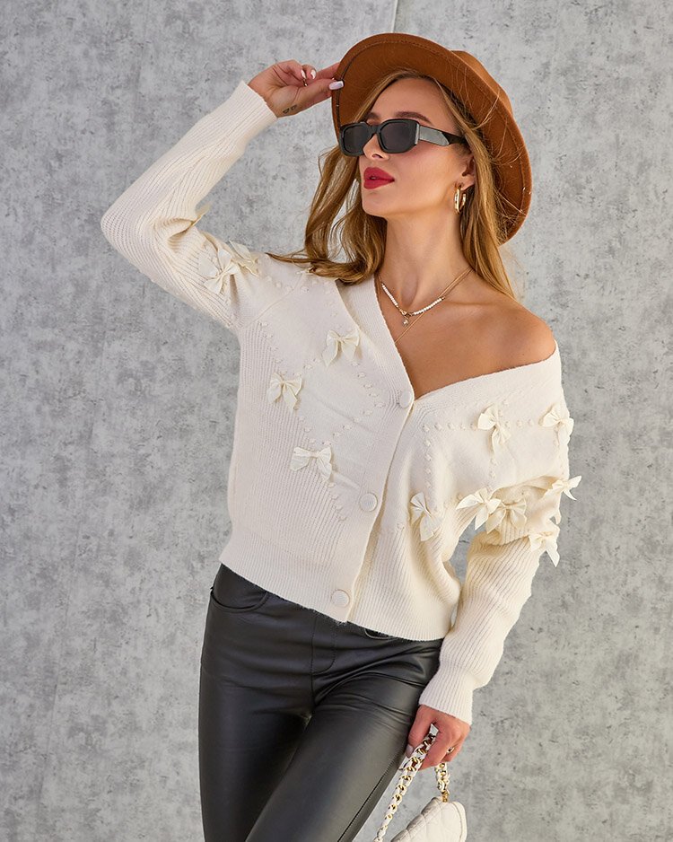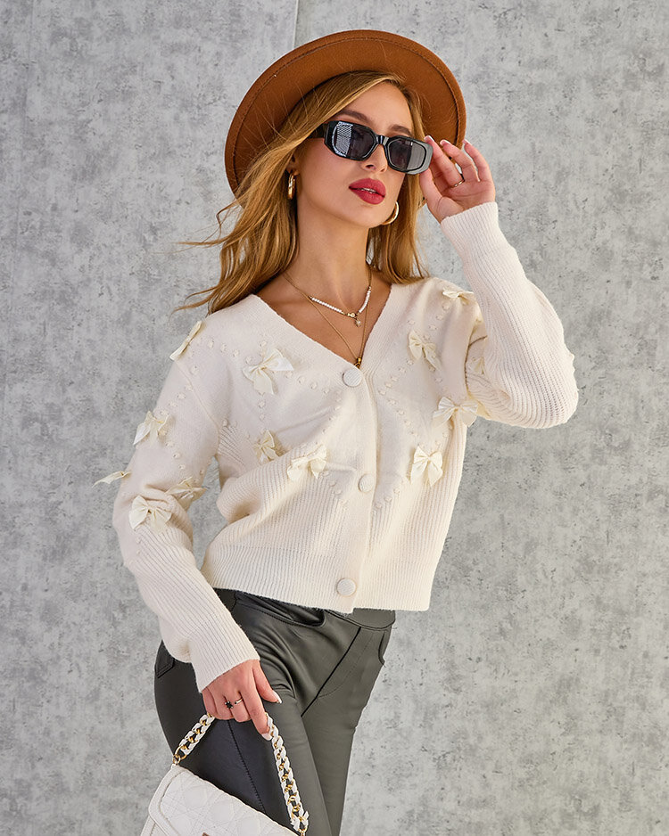 Royalfashion Разкопчан дамски пуловер с панделки