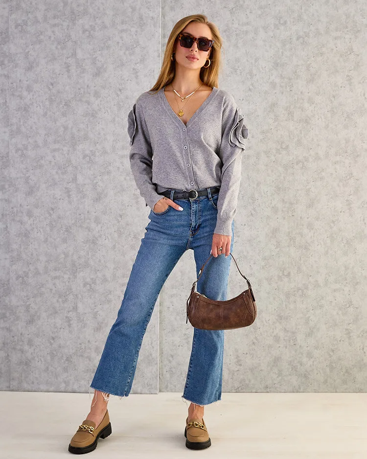 - Ежедневен дамски пуловер. Изработен от мек материал, пуловерът е с дълги ръкави и закопчаване с копчета. Перфектно допълнение към есенния стайлинг.