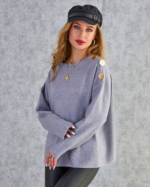 Royalfashion Тънък дамски пуловер с декорации на раменете