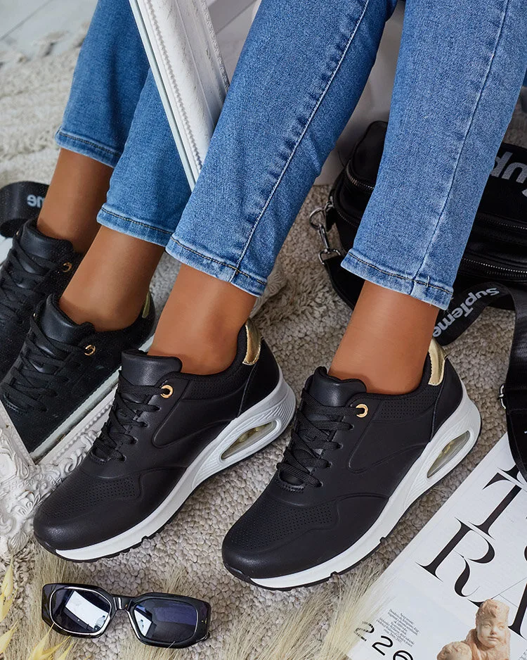 - Модерни дамски спортни маратонки с по-дебела подметка, изработени от екологична кожа. Вътрешна стелка от плат, модел с връзки. Те ще бъдат чудесно украшение за ежедневния стайлинг.