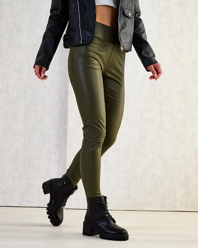 - Класически клинове от хлъзгава материя а'ла кожа. Панталоните са с висока талия и широк ластик на кръста. Перфектна основа за стилни тоалети! ЗАБЕЛЕЖКА: Точност на измерването (+/-) 1 см.