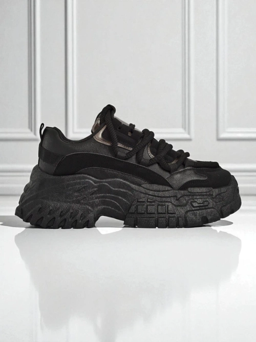 Aurelia Nero – Дамски Сникърси Chunky от Екологична Кожа Черни 6,5 см