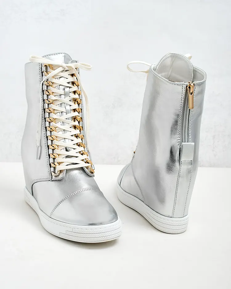 - Дамски спортни ботуши на токчета, изработени от екологична кожа. Обувките се връзват с връзки и имат цип отзад. Идеални за създаване на стилни тоалети!
