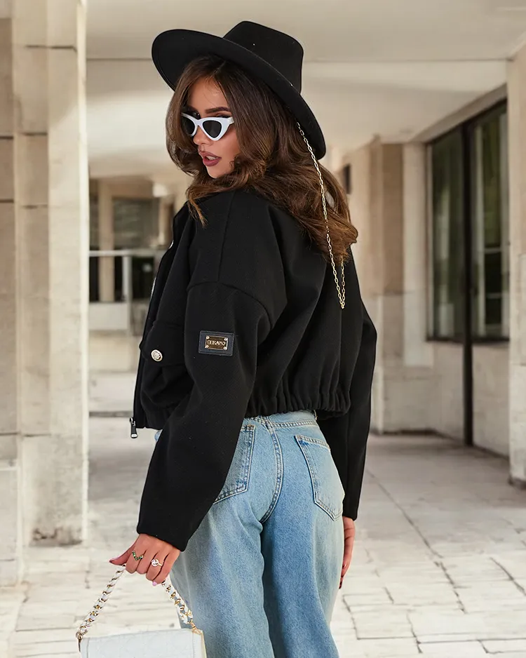 - Стилно дамско яке тип "бомбър". Моделът е с дълги ръкави, има закопчаване с цип и два джоба. Якето е с подплата. Трябва да имате през този сезон! ЗАБЕЛЕЖКА: Точност на измерването (+/-) 1 см.