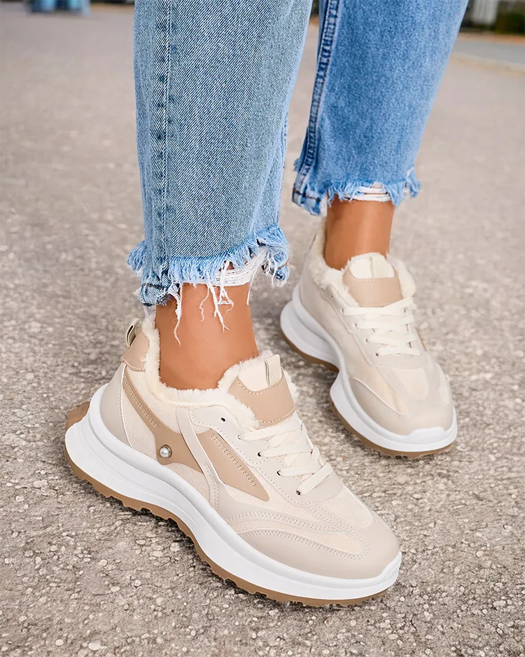 - Дамски изолирани маратонки спортни обувки с по-дебела подметка. Горна част с дантела, изработена от велур екологична кожа с елементи от еко кожа. Мека кожа от вътрешната страна. Супер допълнение към зимните ви ежедневни тоалети!