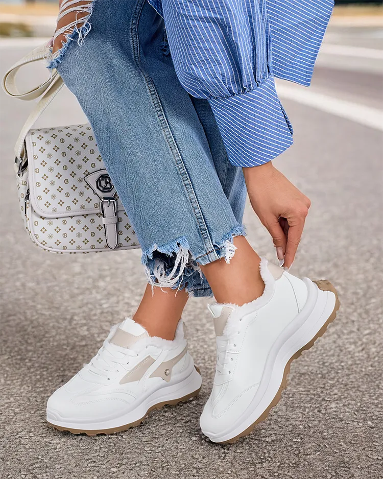 - Дамски изолирани маратонки спортни обувки с по-дебела подметка. Горна част с дантела, изработена от велур екологична кожа с елементи от еко кожа. Мека кожа от вътрешната страна. Супер допълнение към зимните ви ежедневни тоалети!