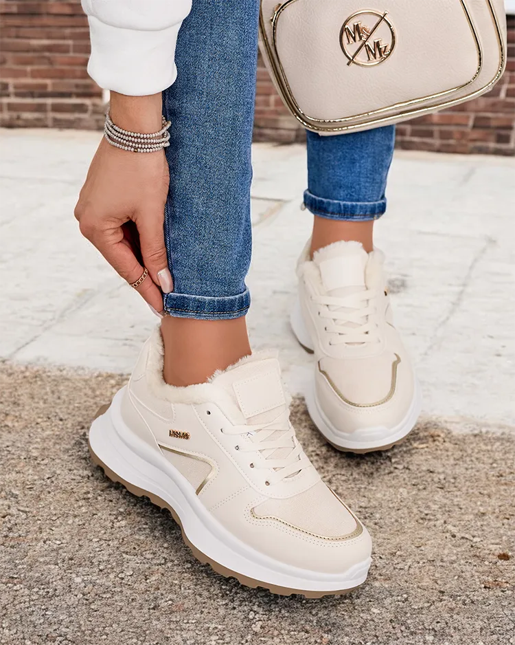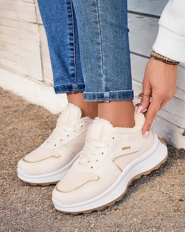 - Дамски изолирани маратонки спортни обувки с по-дебела подметка. Горна част с дантела, изработена от велур екологична кожа с елементи от еко кожа. Мека кожа от вътрешната страна. Супер допълнение към зимните ви ежедневни тоалети!
