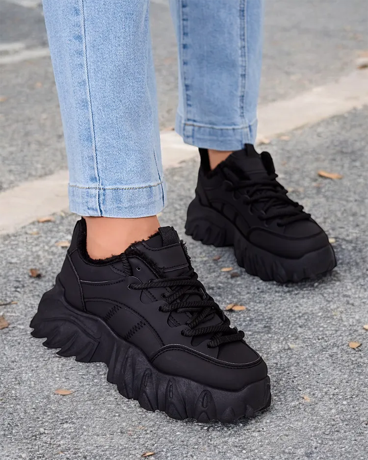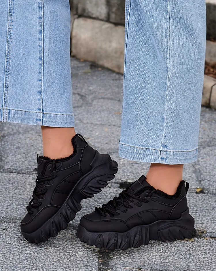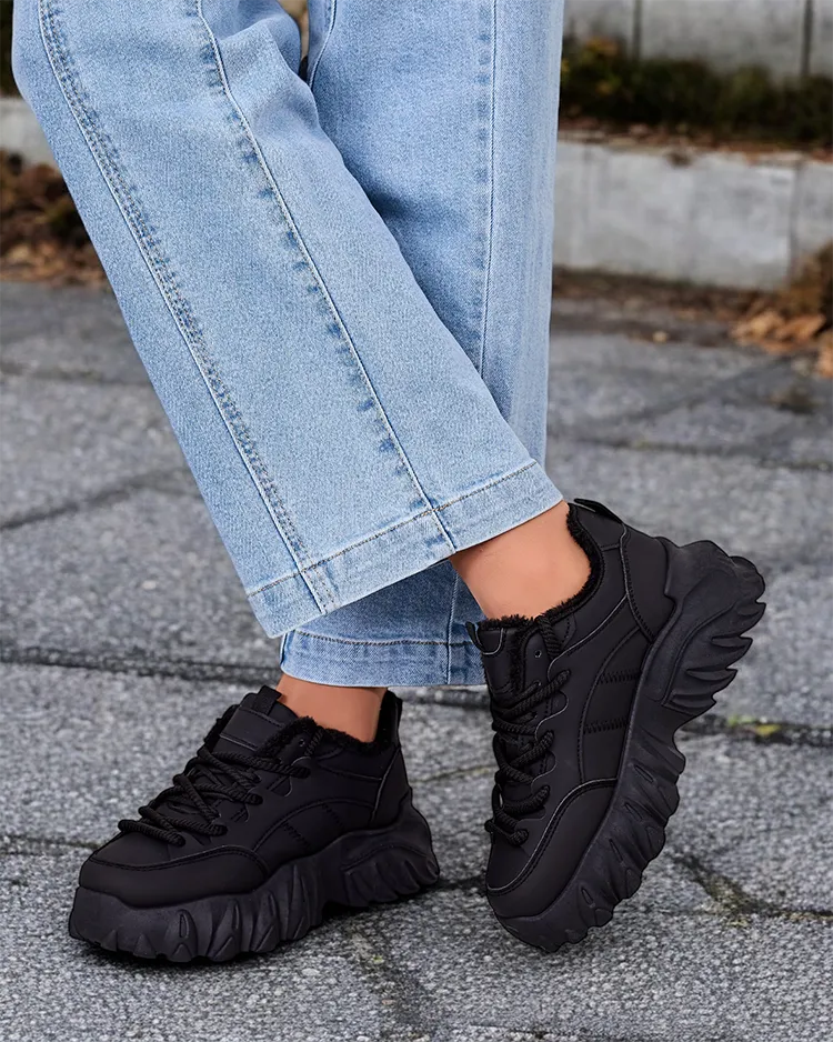 - Дамски изолирани спортни обувки тип маратонка с по-дебела подметка. Горна част с дантела, изработена от матова екологична кожа. Мека кожа отвътре. Супер допълнение към зимните ви ежедневни тоалети!