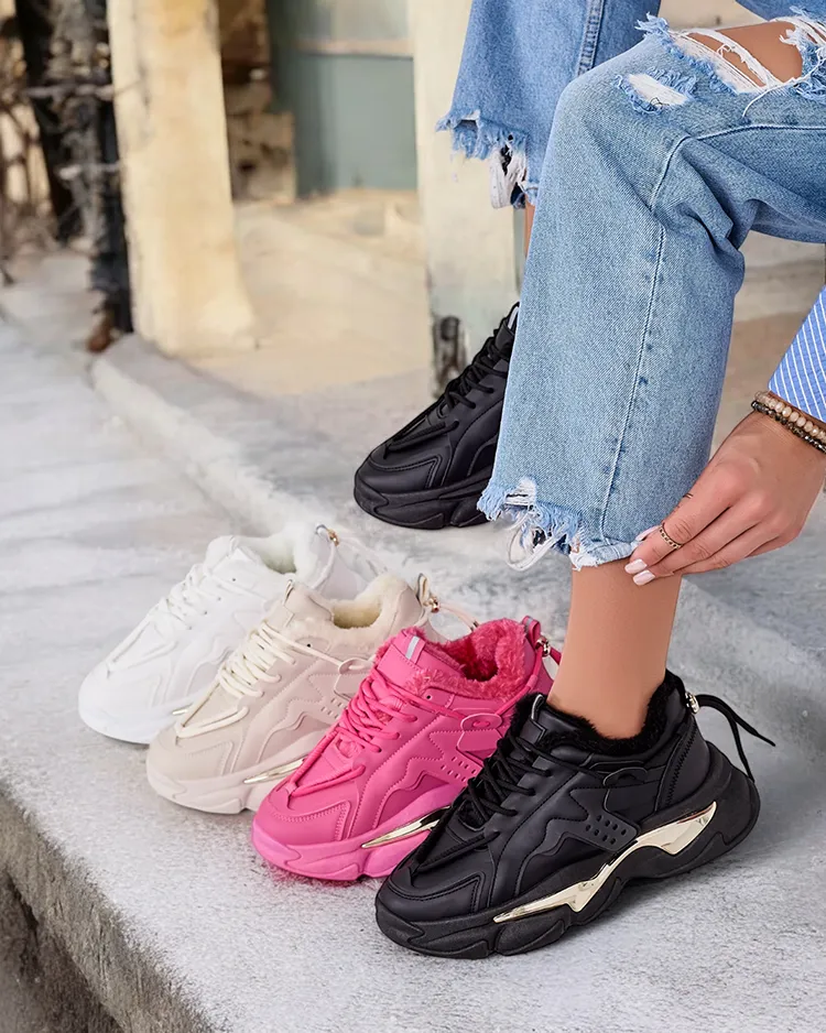 - Дамски спортни маратонки с по-дебела подметка. Горна част с дантела, изработена от екологична кожа. Вътрешна част, изцяло изолирана с кожа. Идеални за спортни тоалети!