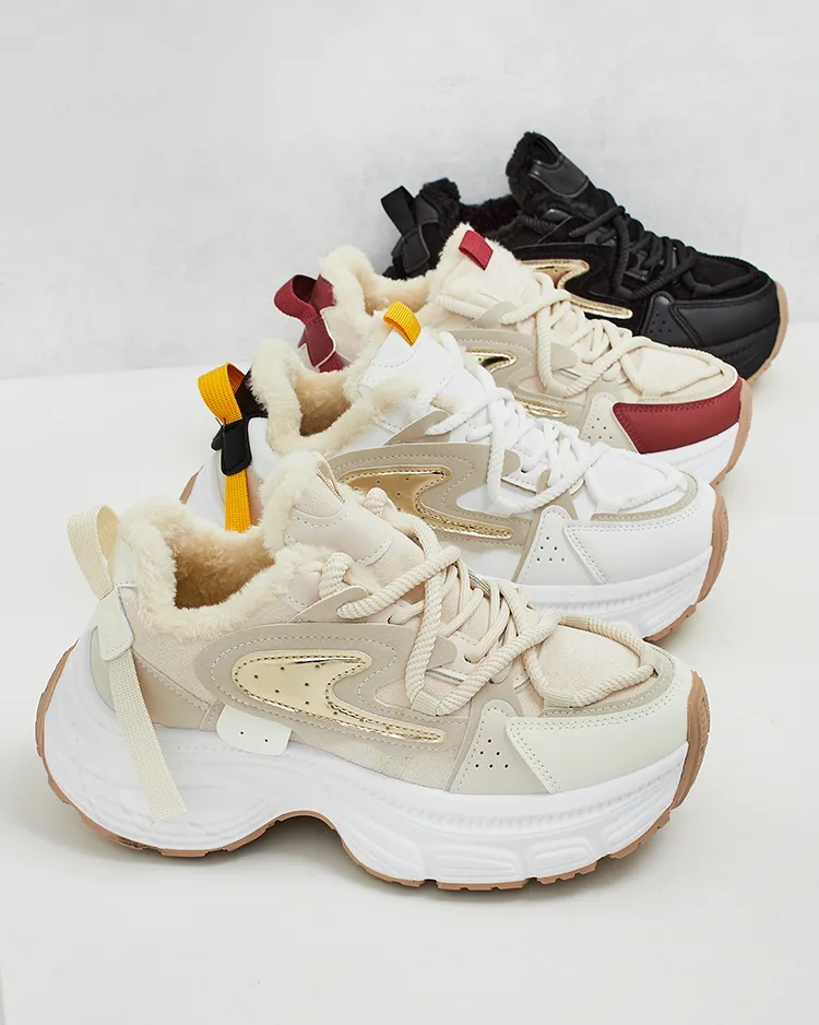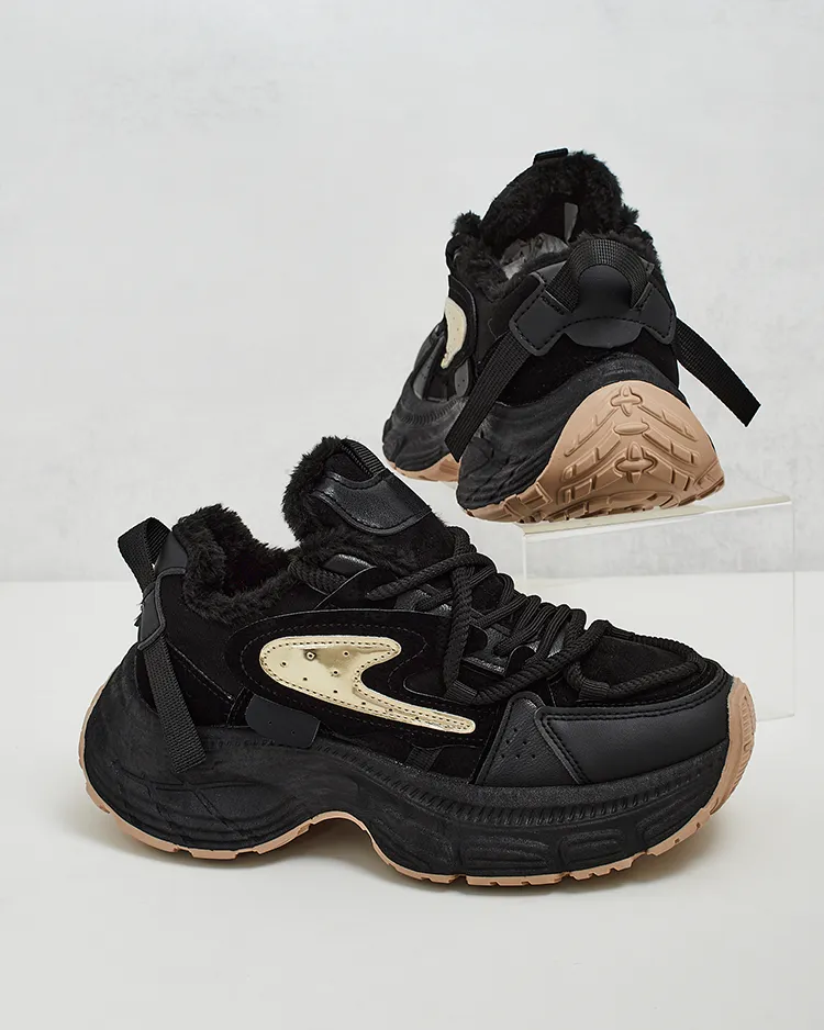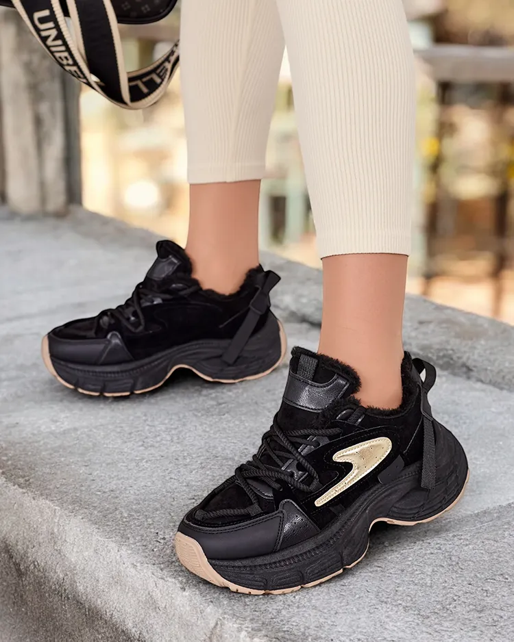 - Дамски изолирани маратонки спортни обувки с по-дебела подметка. Горна част с дантела, изработена от велур екологична кожа с елементи от еко кожа. Мека кожа от вътрешната страна. Супер допълнение към зимните ви ежедневни тоалети!
