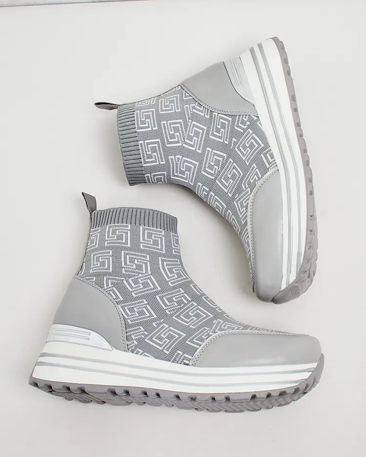 • Дамски маратонки с по-дебела подметка - перфектната комбинация от стил и комфорт. Обувки с приплъзване, изработени от плат. Моделът е с декоративна щампа. Добър избор за всеки ден!