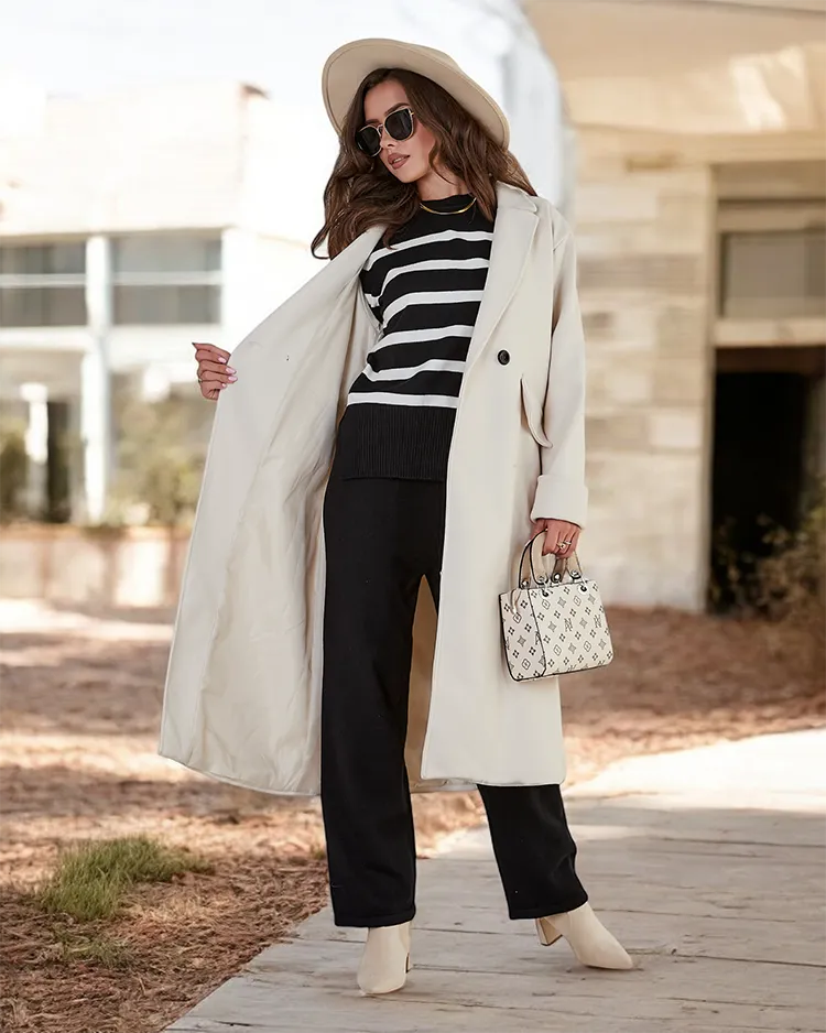 - Дълго дамско палто, изработено от приятен материал. Моделът е с дълги ръкави и закопчаване с копчета. Има подплата. Перфектен избор за есента! ЗАБЕЛЕЖКА: Точност на измерването (+/-) 1 см. Размерите са измерени в плосък ръст.
