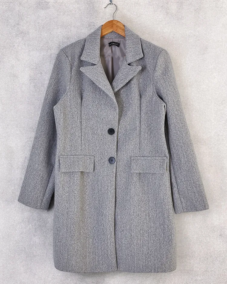 - Дамско палто от приятен материал. Моделът е с дълги ръкави и закопчаване с копчета. Има подплата. Перфектен избор за есента! ЗАБЕЛЕЖКА: Точност на измерването (+/-) 1 см. Размерите са измерени в плосък ръст.