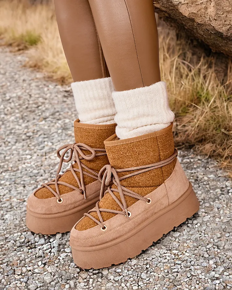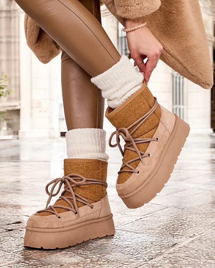 • Дамски ботуши за сняг с горна част, изработена от комбинация от еко кожа и текстилен материал. Приятна кожа отвътре, обувки с приплъзване и дантела. Перфектни за зимата!