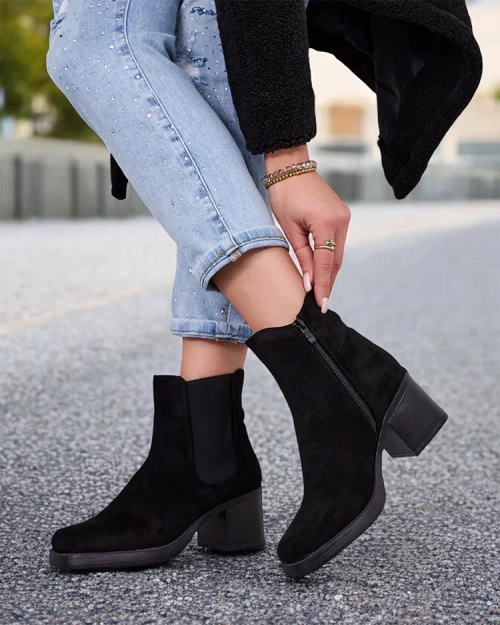 - Ботуши Stiletto - стил и комфорт в едно. Модел с цип и кръгъл нос. Обувките са изработени от велур екологична кожа. Стелка от плат. Идеални за есенните тоалети!