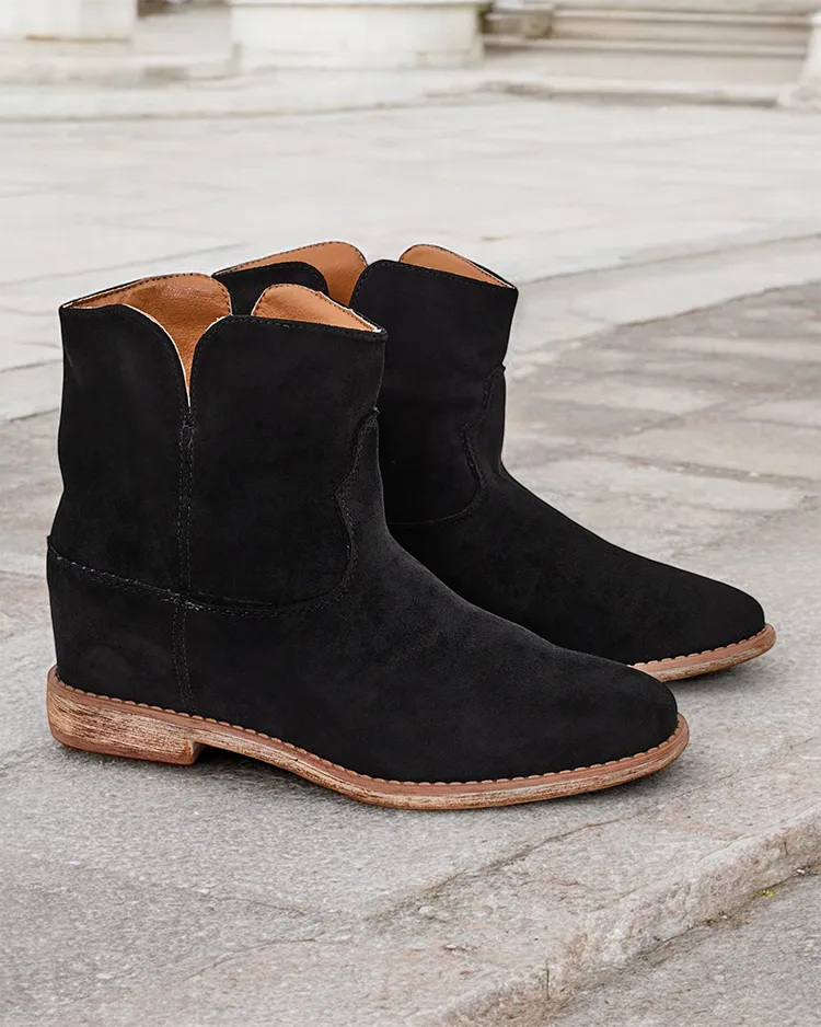 - Класически каубойски ботуши на закрита платформа от сив еко-велур. Дамските обувки имат подплата от косъм. Ботушите са страхотно допълнение към панталони и рокли!