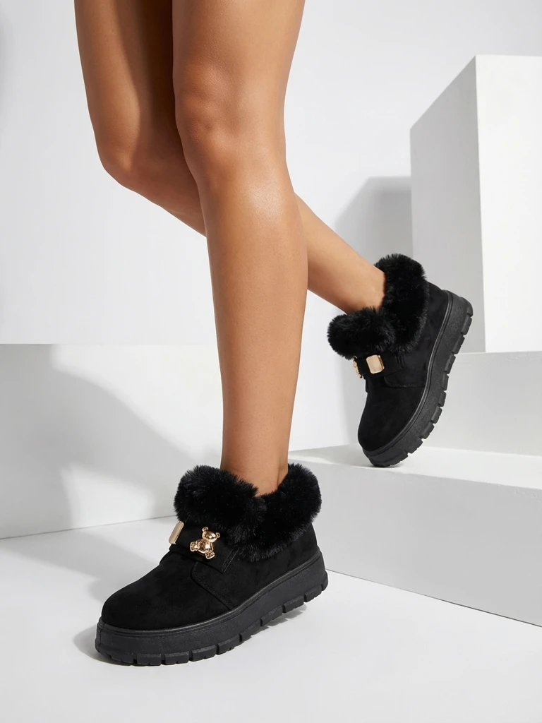 - Страхотни дамски зимни ботуши на платформа. Горната част е изработена от екологична велурена кожа, а средата е изолирана с кожа. Обувките са с фина декорация на горната част. Идеалната основа за зимата!