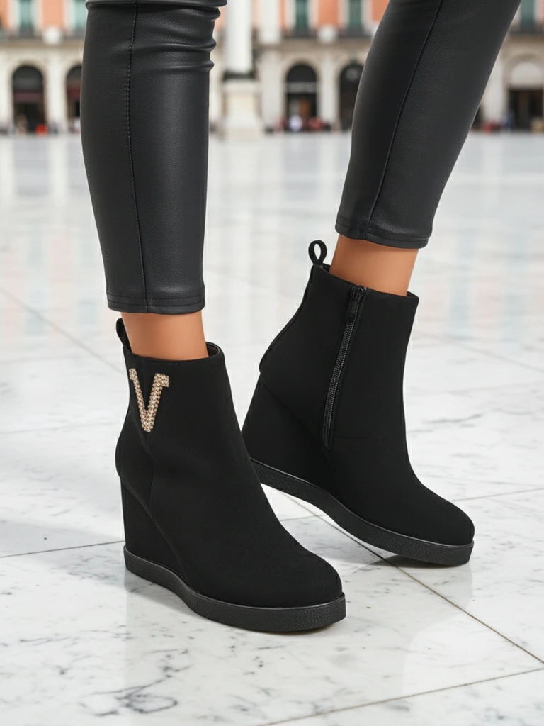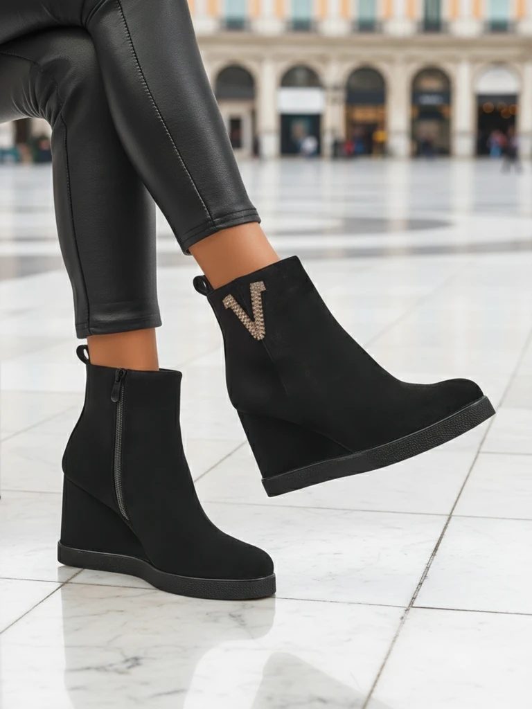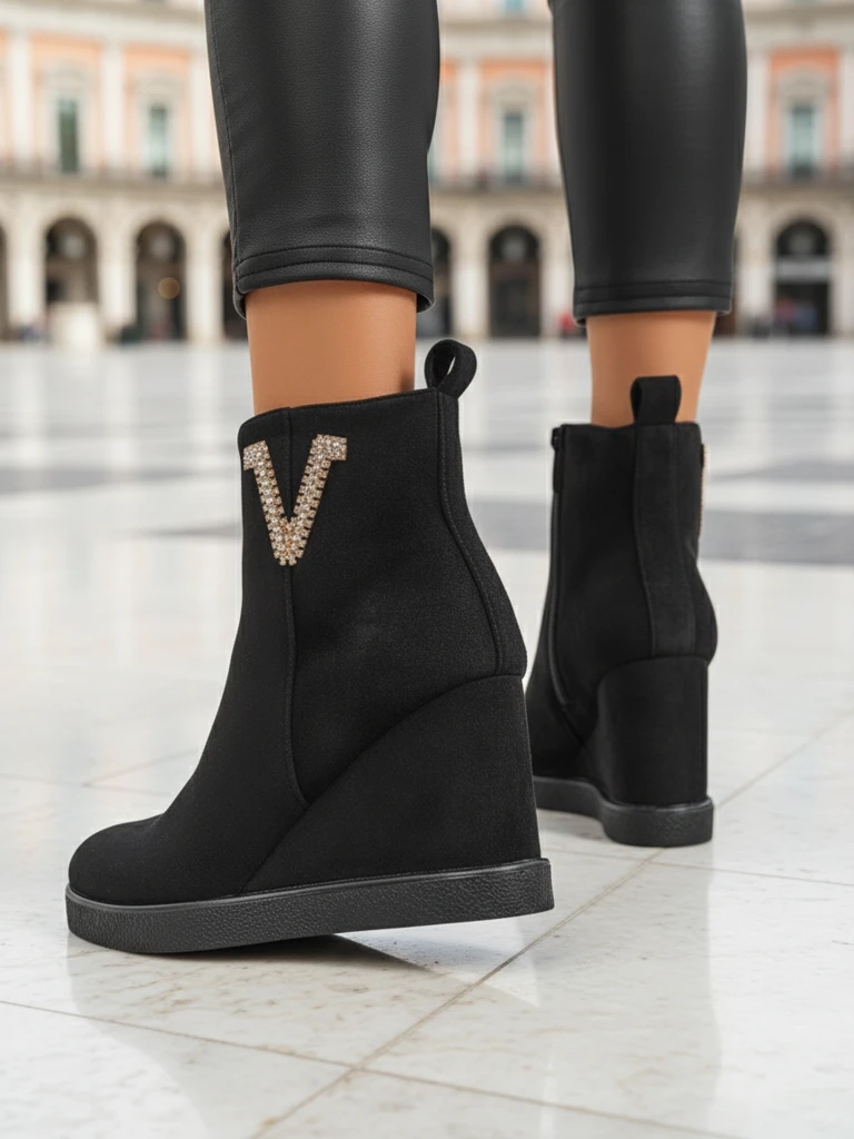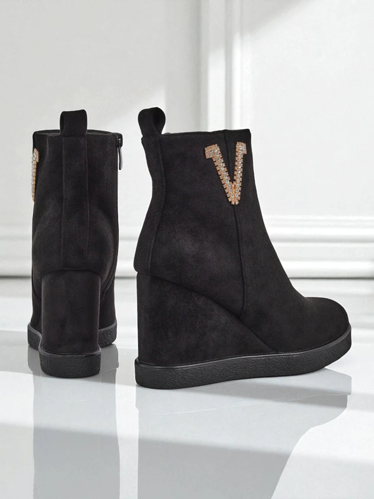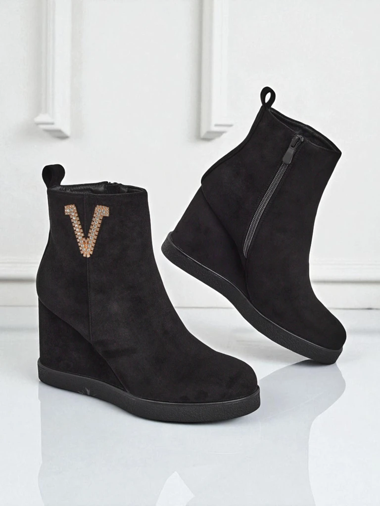 - Елегантни дамски ботуши на токчета, изработени от екокожа. Обувките са с пълнеж от кожа от вътрешната страна. Перфектен избор за есента!