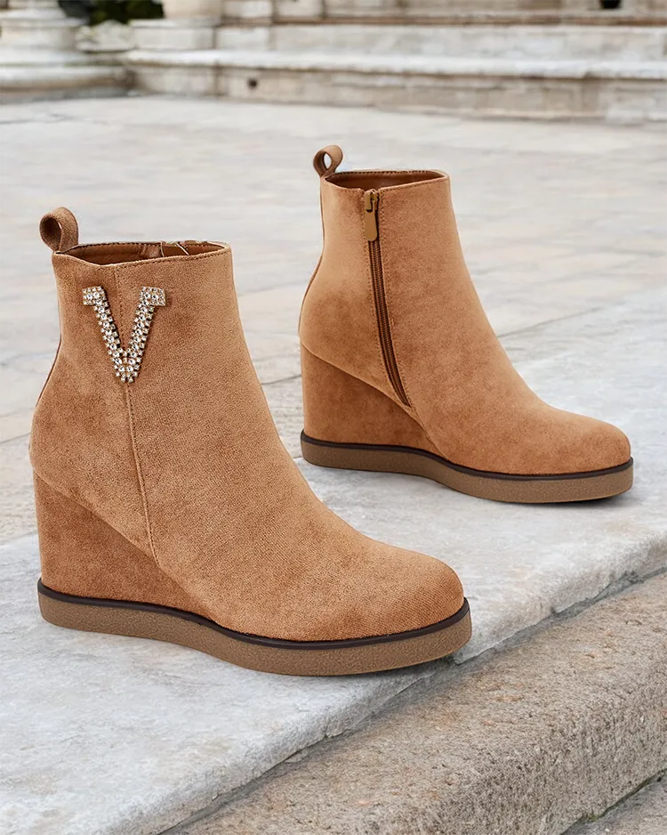 - Елегантни дамски ботуши на токчета, изработени от екокожа. Обувките са с пълнеж от кожа от вътрешната страна. Перфектен избор за есента!