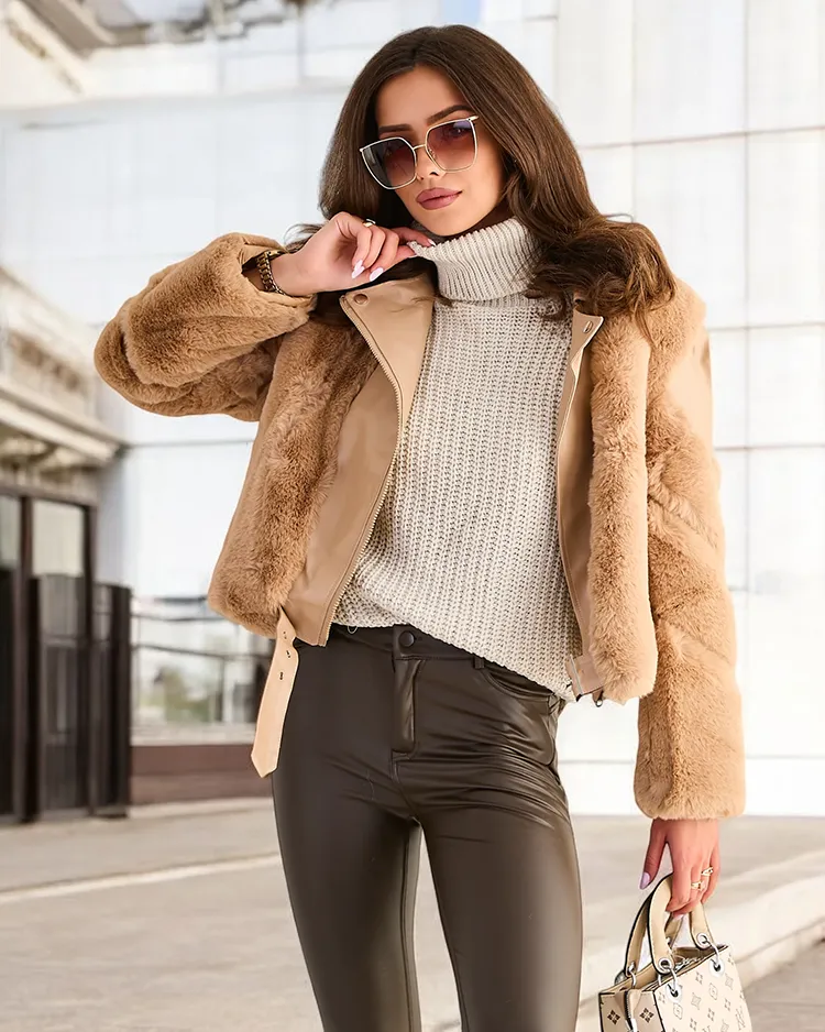 • Вечният дамски мото стил яке, изработено от мек плюш и еко кожа - перфектният избор за есента! Моделът е закопчан с цип, разполага с два ципови джоба отстрани. ЗАБЕЛЕЖКА: Точност на измерване (+/-) 1 см.