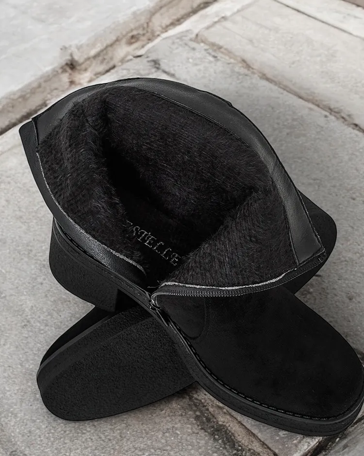 - Глезенки на стилетно токче - стил и комфорт в едно. Моделът е закопчан с цип с квадратен връх. Обувките са изработени от еко велур. Стелката е от еко кожа. Идеални за есенни тоалети!