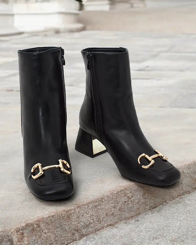 - Тези стилни женски боти на глезена, изработени от еко-кожа, са идеалния избор за по-студените дни. Моделът се закопчава с цип, има квадратен връх и елегантно украса на пръстите.