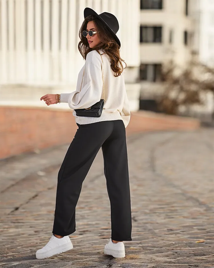 - Изолирани дамски суитчър панталони от мек материал. Модел с проста кройка, с два джоба без цип, ластична талия и връзки. Вътре покрит с топъл поларен флис. Идеален избор за всекидневно носене!