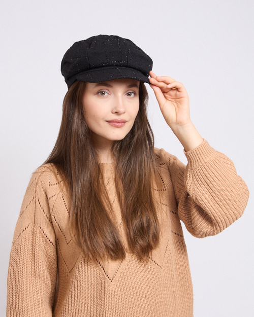 - Красива дамска беретка с шилец, изработена от приятен на допир материал с добавка на блестяща прежда. Класически модел, който ще допълни перфектно есенните стилове!