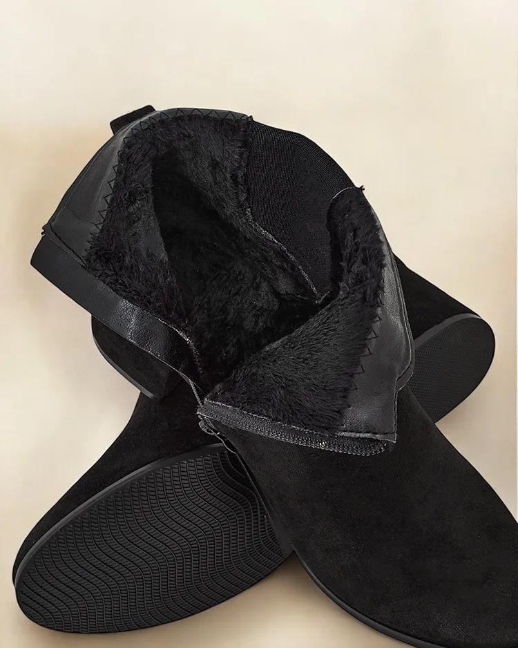 - Елегантни боти до глезена на малка пета са идеалната комбинация от елегантност и комфорт. Моделът е изработен от еко велур и има нежна подплата, която придава стилно излъчване за всякакъв повод. Обувките имат декоративни абразии на горната част.