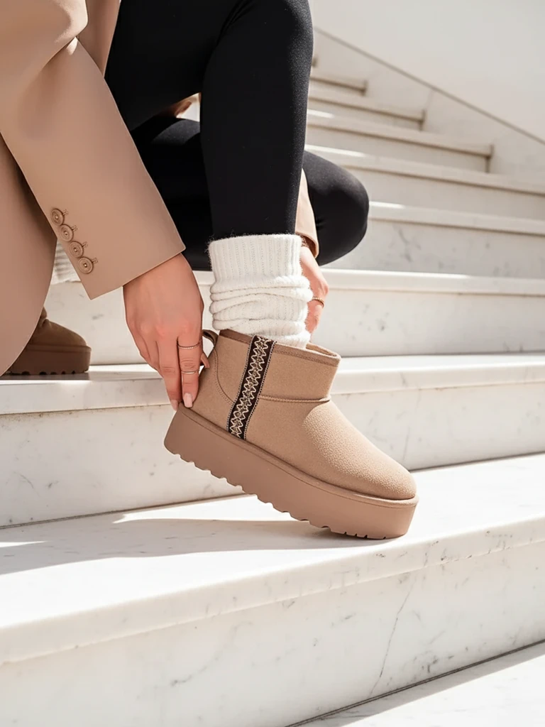 - Страхотни дамски зимни снежни боти на платформа. Горната част е изработена от естествена кожа, отвътре е подплатена с косъм. Идеална база за зимата!