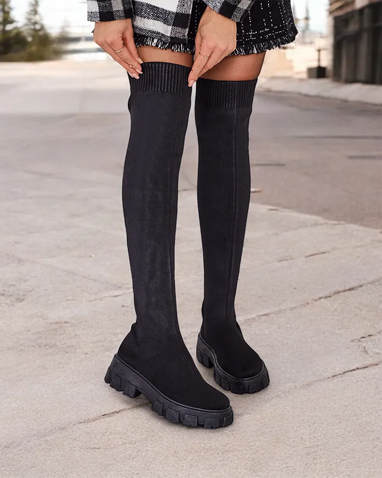 - Стилни дамски ботуши с платформа. Горната част е направена от гъвкав материал, с платени стелки отвътре. Модел без връзки. Идеални за всекидневни есенни тоалети!