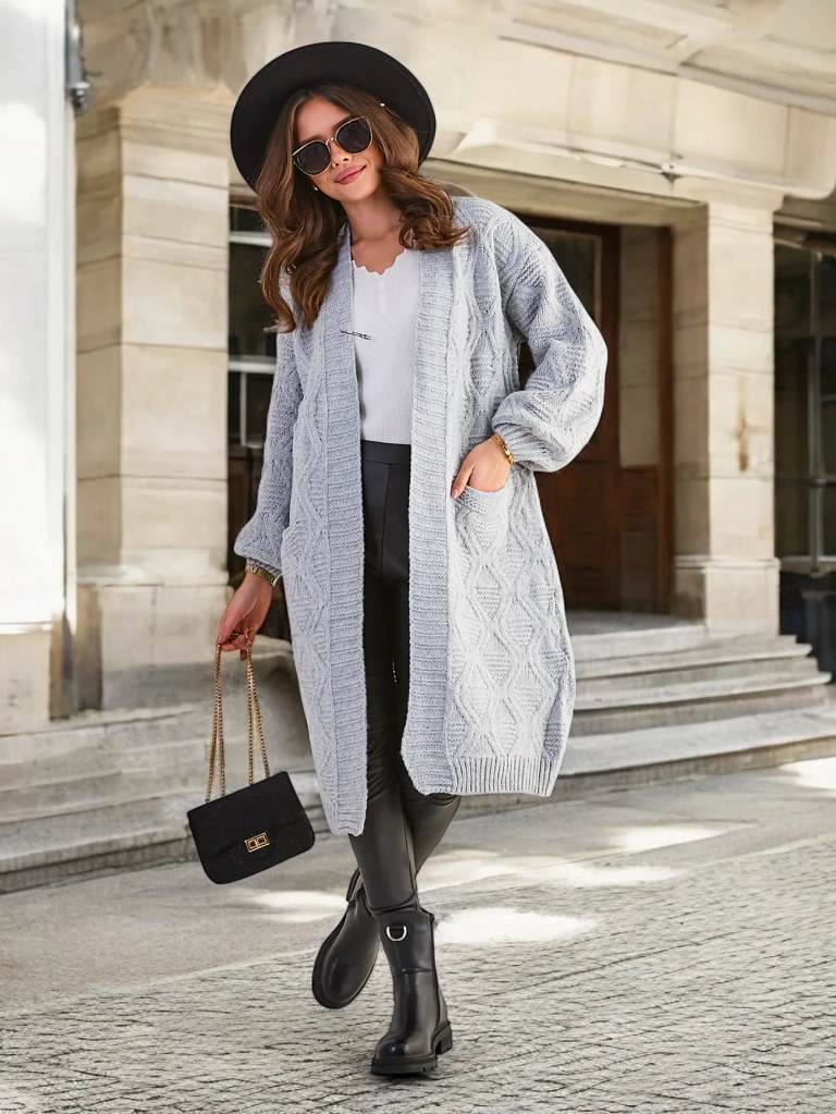 - Красив жилет за жени, направен от приятен плетивен материал. Жилетка без закопчаване и без качулка. Необходим акцент за гардероба ви, за да допълни есенните стайлинги! ЗАБЕЛЕЖКА: Точност на измерване (+/-) 1 см.