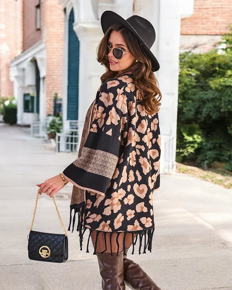 • Елегантно дамско пончо с декоративен принт и каймички. Мек материал, топлина и стил в едно. Перфектно за всяка тоалетна. В наличност в различни цветове.