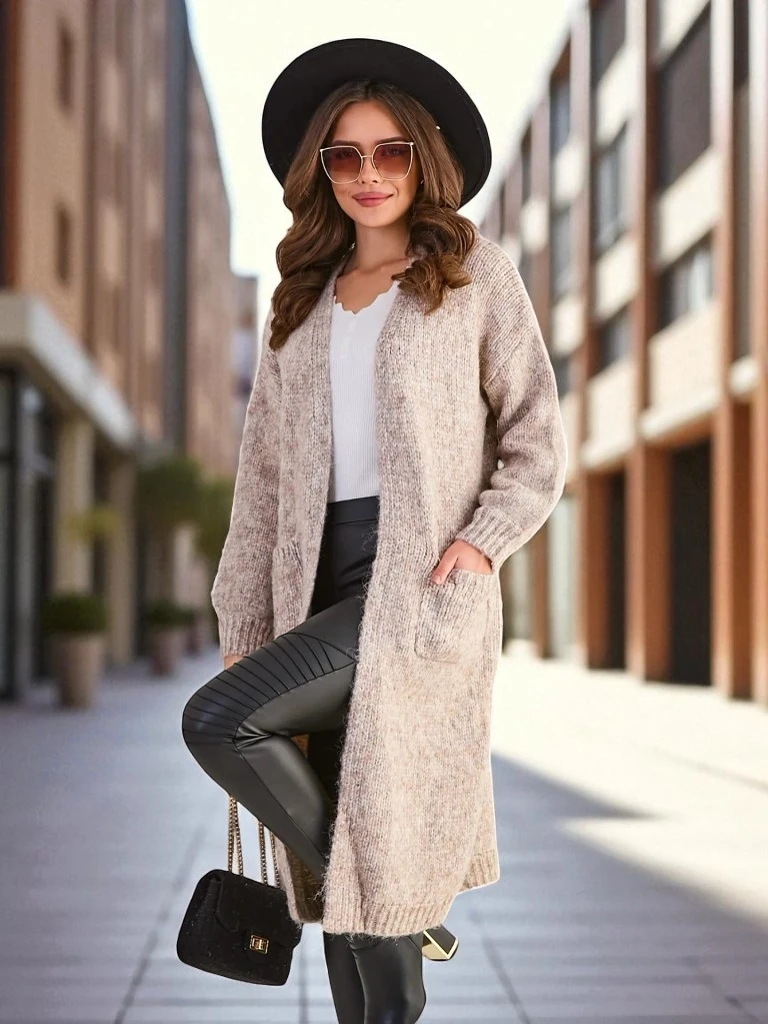 • Красива дамска пончо блуза, изработена от удобен плетен материал. Кардиган без закопчаване и без качулка. Необходимо допълнение към гардероба ви, което допълва есенните стилизации! ЗАБЕЛЕЖКА: Точност на измерване (+/-) 1 см.