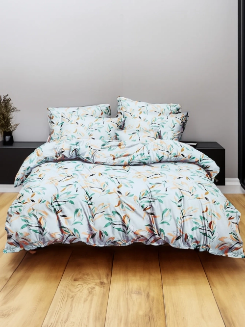 - Красив комплект за спалня с щампи, изработен от 100% памук сатен. Прекрасна идея за подарък! Комплектът включва: - плик за завивка с цип 160x200 см - 2бр. калъфки за възглавници с цип 70x80 см - плоска престилка 180x230 см