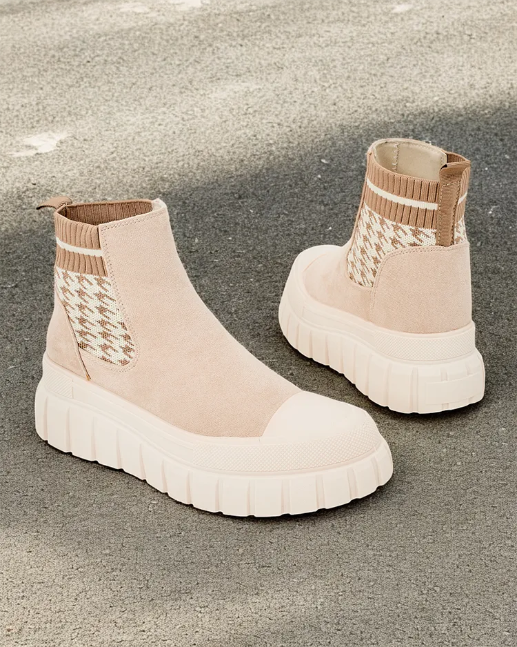• Дамски платформени глезените ботуши от изкуствена кожа, наподобяваща замша. Ботуши за бързо обуване, интериор от удобна материя. Идеални за есента!