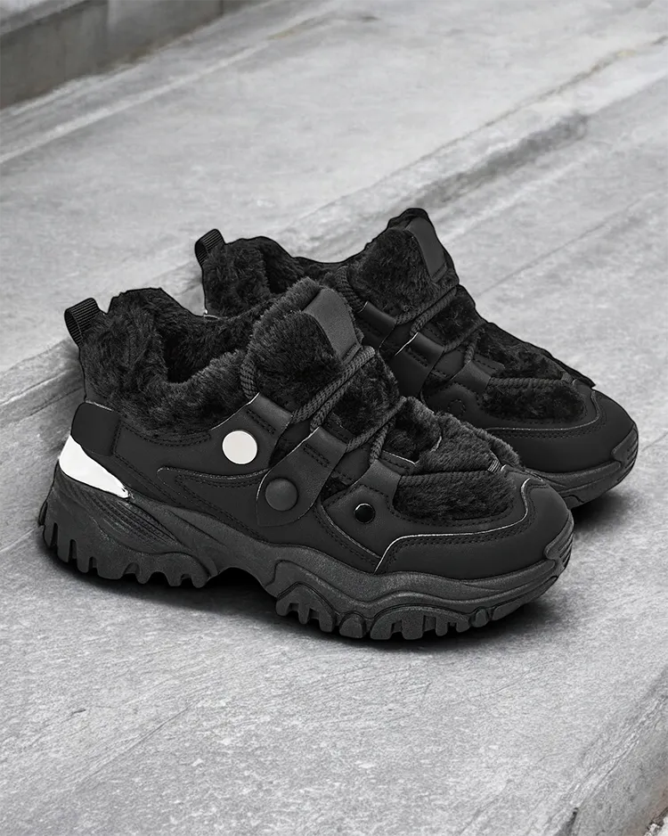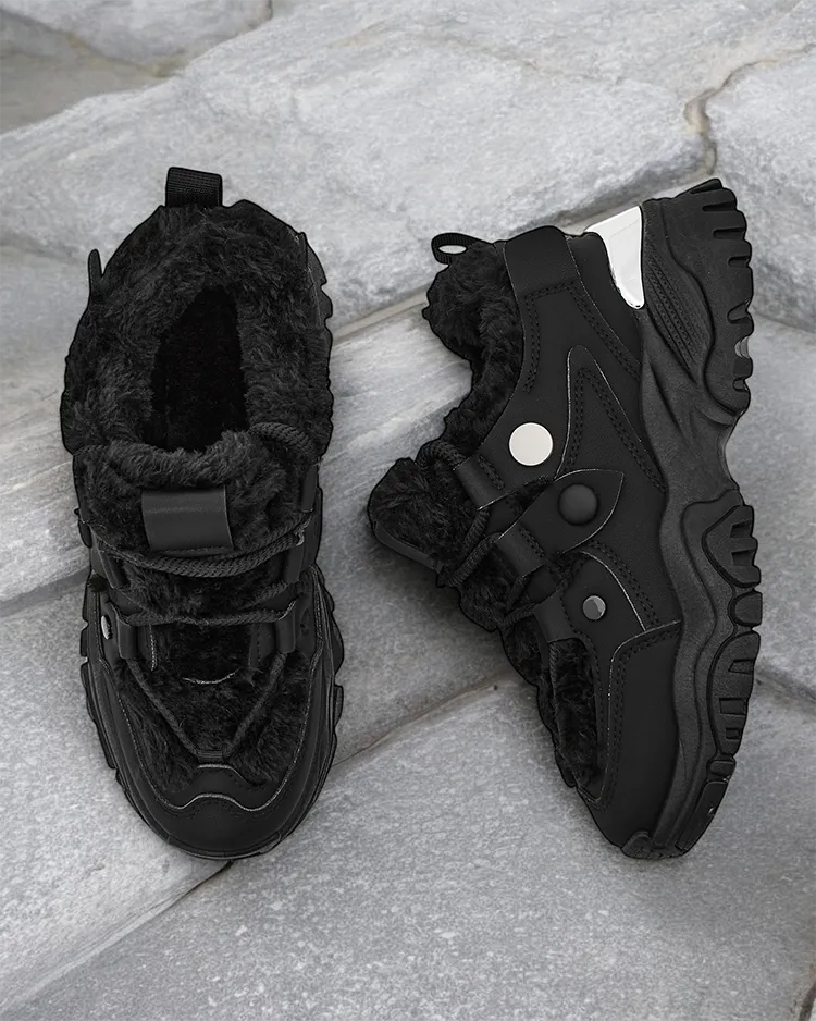 - Дамски изолирани спортни обувки в стил на обувки с по-дебела подметка. Връзки от комбинация от еко-кожа и плат. Вътре мека кожа. Прекрасно допълнение към вашите зимни ежедневни тоалети!