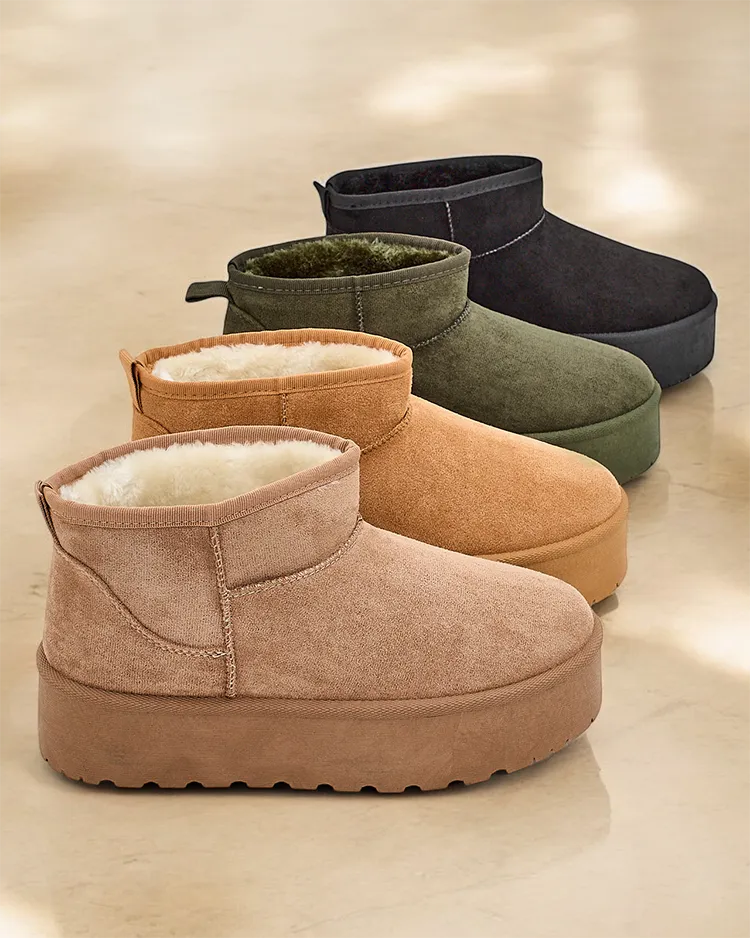 - Страхотни зимни платформени снежни ботуши за жени. Горната част е изработена от екологична замша, подплатена с кожа. Идеална основа за зимата!
