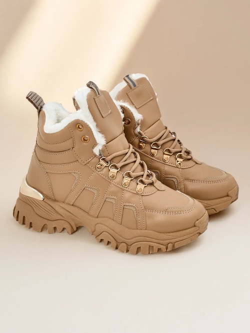 - Спортни дамски обувки с дебела подметка. Горна част с връзки, изработена от еко кожа. Изцяло подплатени с плюш отвътре. Идеални за спортни тоалети!