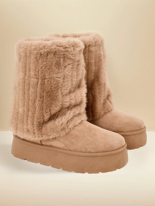 - Дамски снежни ботуши с горнище, изработено от комбинация от еко-велур и приятен косъм. Вътре има косъм, обувките имат пълзяща се горна част. Идеални за зимата!