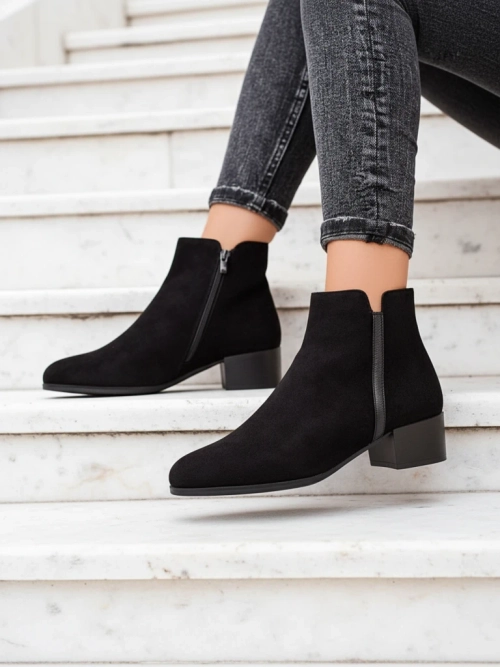 Дамските боти в елегантен черен цвят са идеален избор за есенно-зимния сезон. Изработени от висококачествен екологичен велур, те осигуряват не само модерен външен вид, но и комфорт при носене. Синтетичният материал на стелката повишава удобството при използване, което ги прави подходящи за дълъг ден на работа или социални събирания. Плоският ток с височина 4 см осигурява стабилност и комфорт, което прави тези боти идеални за ежедневна употреба.