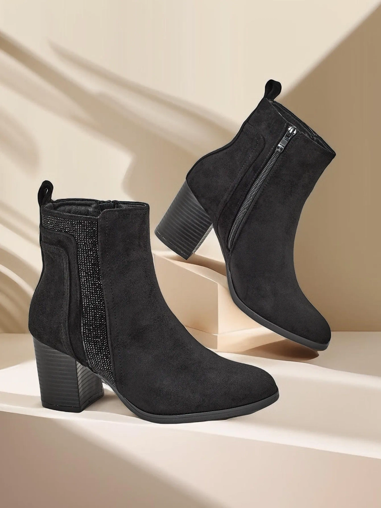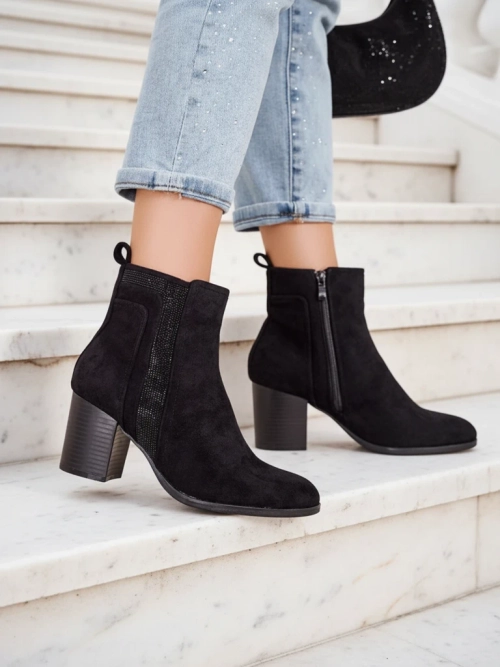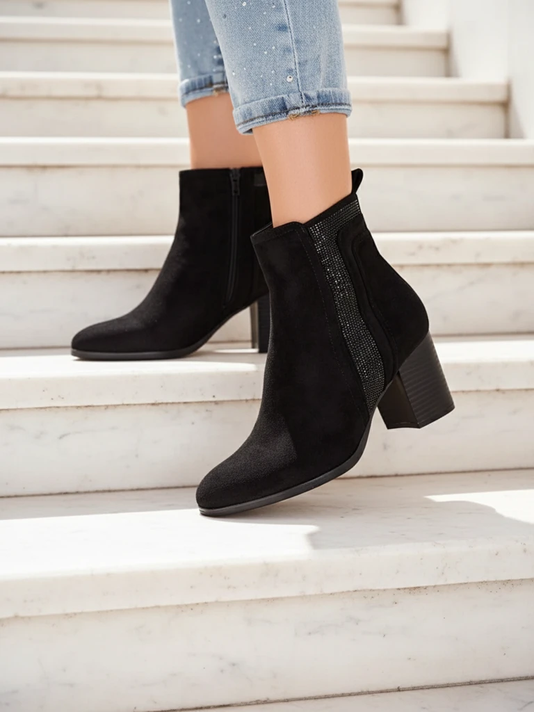 - Дамските ботуши до глезена са идеалното решение за по-студените дни. Горната част от фалшива кожа е закопчана с цип, с фалшива кожена стелка вътре. Пост модел, с кръгло бомбе. Отлично допълнение към вашите ежедневни тоалети!