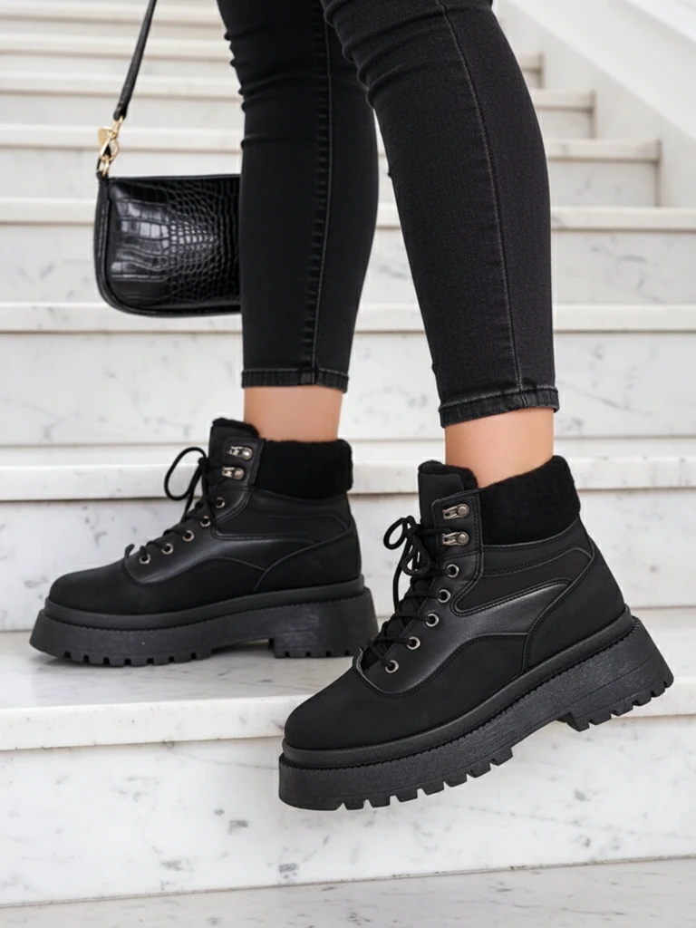 - Вечни дамски снежни боти с дебели подметки. Горна част от изкуствена кожа. Вътре, подплата във формата на изкуствен косъм, връзвани боти. Идеални за по-студените сезони!