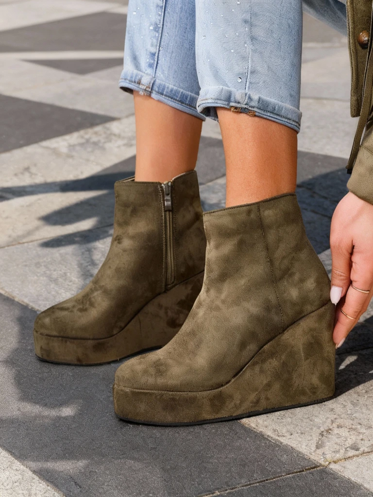 - Елегантни дамски обувки на платформа, изработени от еко велур. Обувките са подплатени с кожа отвътре. Идеален избор за есен!