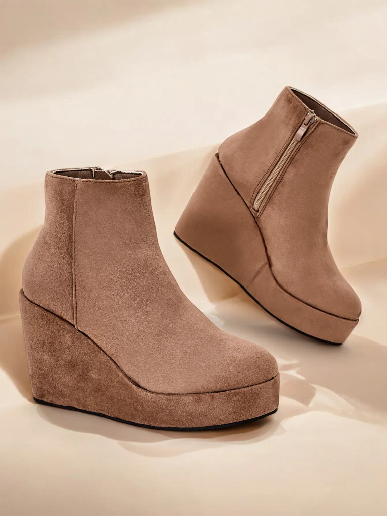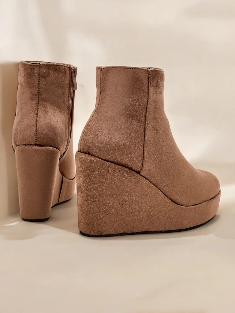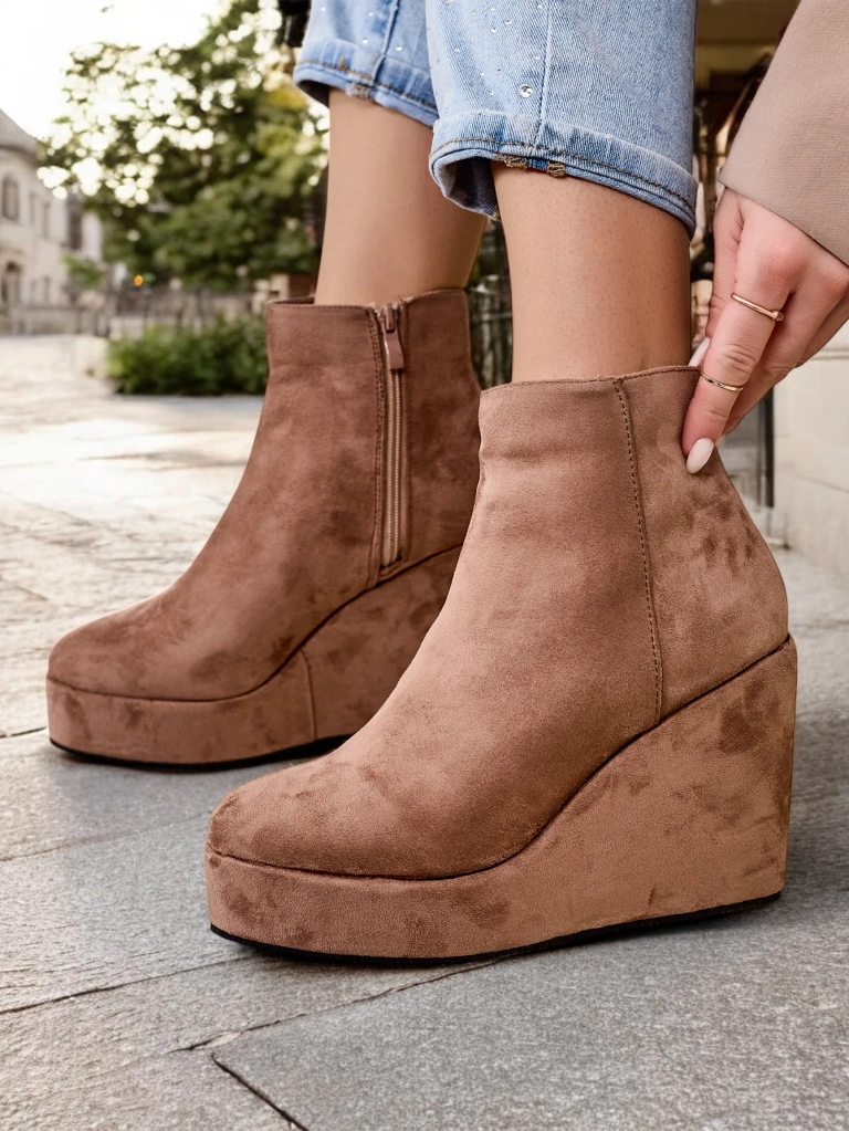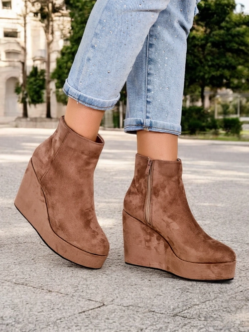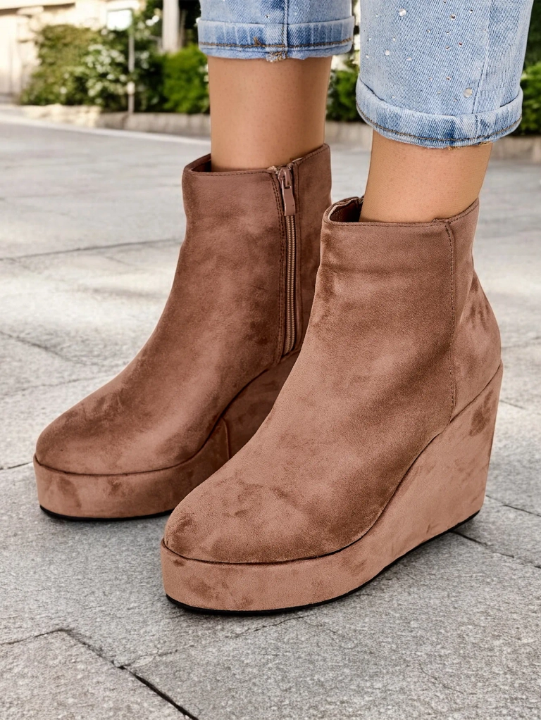 - Елегантни дамски боти с ток, изработени от еко-велур. Обувките са подплатени с изкуствен косъм от вътрешната страна. Изключителен избор за есента!
