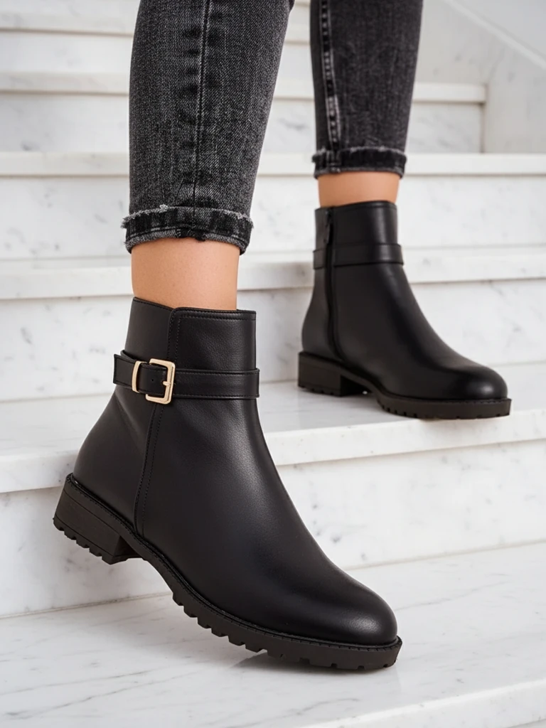 - Прекрасни дамски боти с равна подметка, изработени от еко кожа. Интериорът е от деликатно кожухче. Моделът е с цип за закопчаване. Идеални за есенни тоалети!