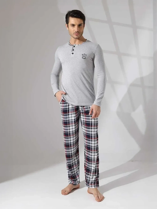 - Елегантни мъжки пижами с уникален принт и карирана панталонка. Изработени от висококачествен памук, гарантиращ удобен сън и стилно изледи. ВНИМАНИЕ: Точност на измерването (+/-) 1 см.
