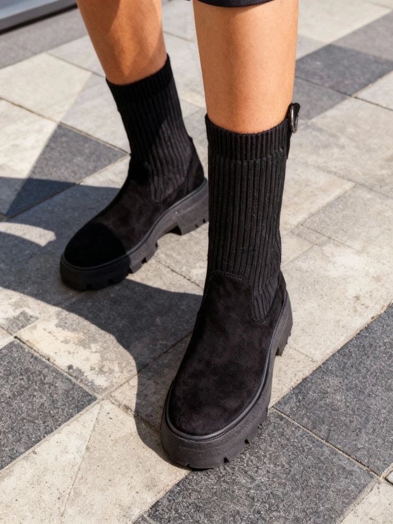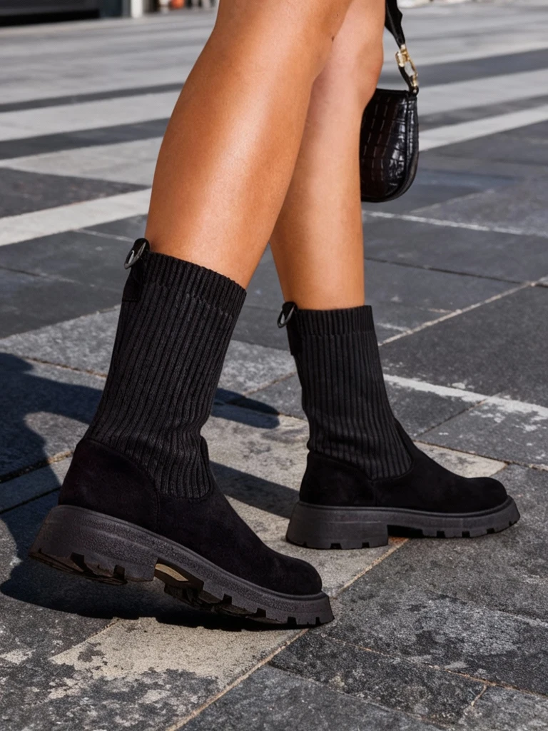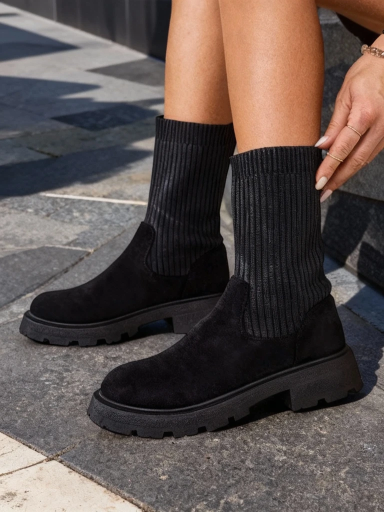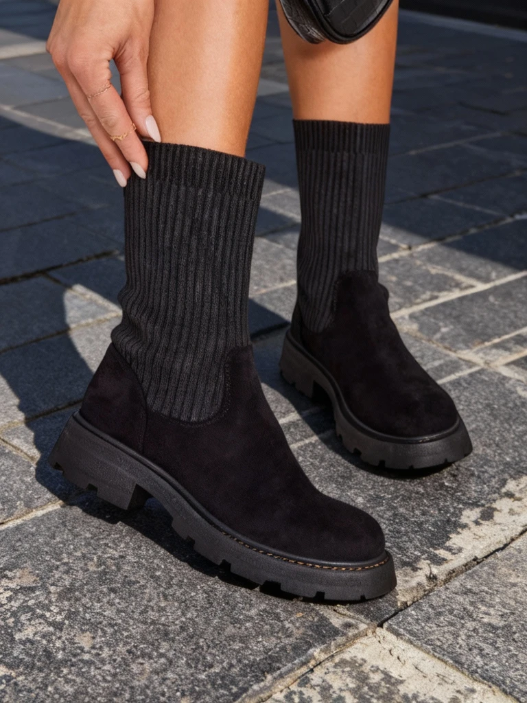 - Фантастични дамски боти с плоска подметка, изработени от еко кожа, приличаща на велур и плат. Платнената подплата осигурява удобство и топлина дори в по-студените дни. Еластичните вложки отстрани осигуряват перфектно прилягане!