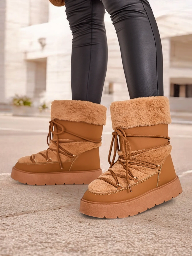 - Дамски снежни обувки със стелка от комбинация от еко кожа и приятна плат. Вътре има приятна подплата от косъм, обувките имат връзка на стелката. Идеални за зимата!