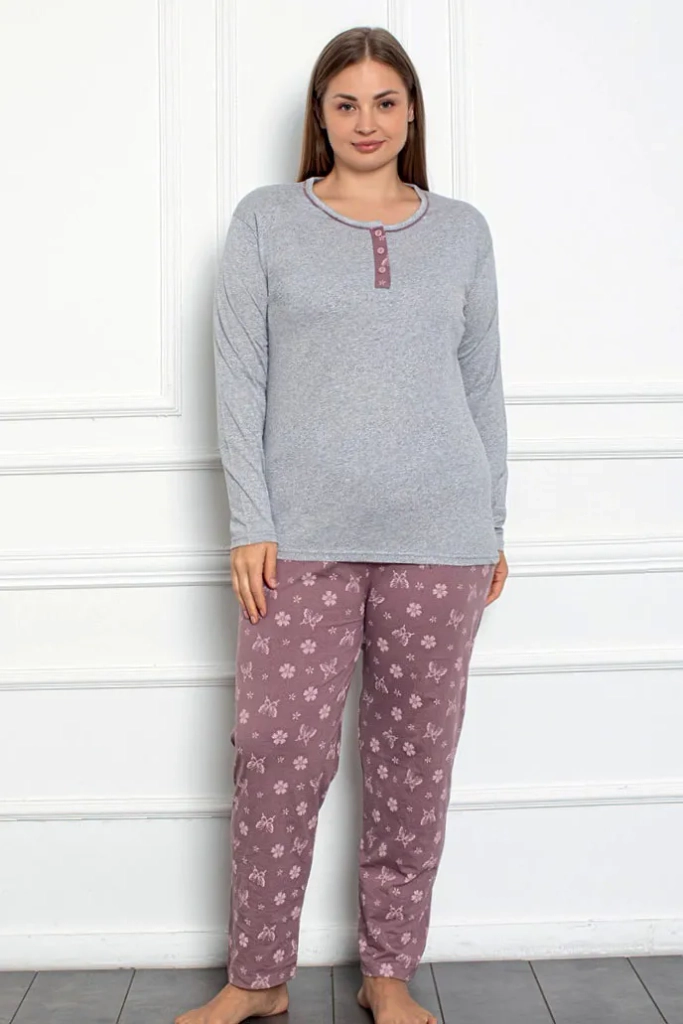 Royalfashion Жени Памучен комплект 2 части Пижама с мотив на пеперуда ПЛЮС РАЗМЕР